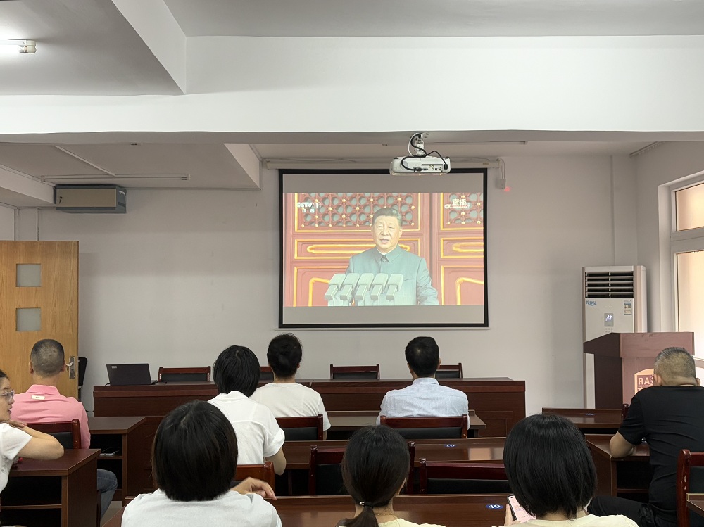 上午9时,大会正式开幕,大家怀着激动的心情,聚精会神,认真聆听了习近平总书记发表的重要讲话。习近平总书记指出,伟大抗战精神,是中国人民弥足珍贵的精神财富,将永远激励中国人民克服一切艰难险阻、为实现中华民族伟大复兴而奋斗。在奋进的新时代,铭记历史、缅怀先烈、珍视和平、开创未来。随后进行的阅兵式中,整齐划一的徒步方队、威武先进的装备方队、英姿飒爽的空中梯队依次通过天安门广场,展现出了我国强大的国防实力和军队的良好精神风貌,观看直播现场爆发出一阵阵热烈的掌声,全体员工精神振奋、热血沸腾,由衷地为祖国的繁荣强大感到自豪。