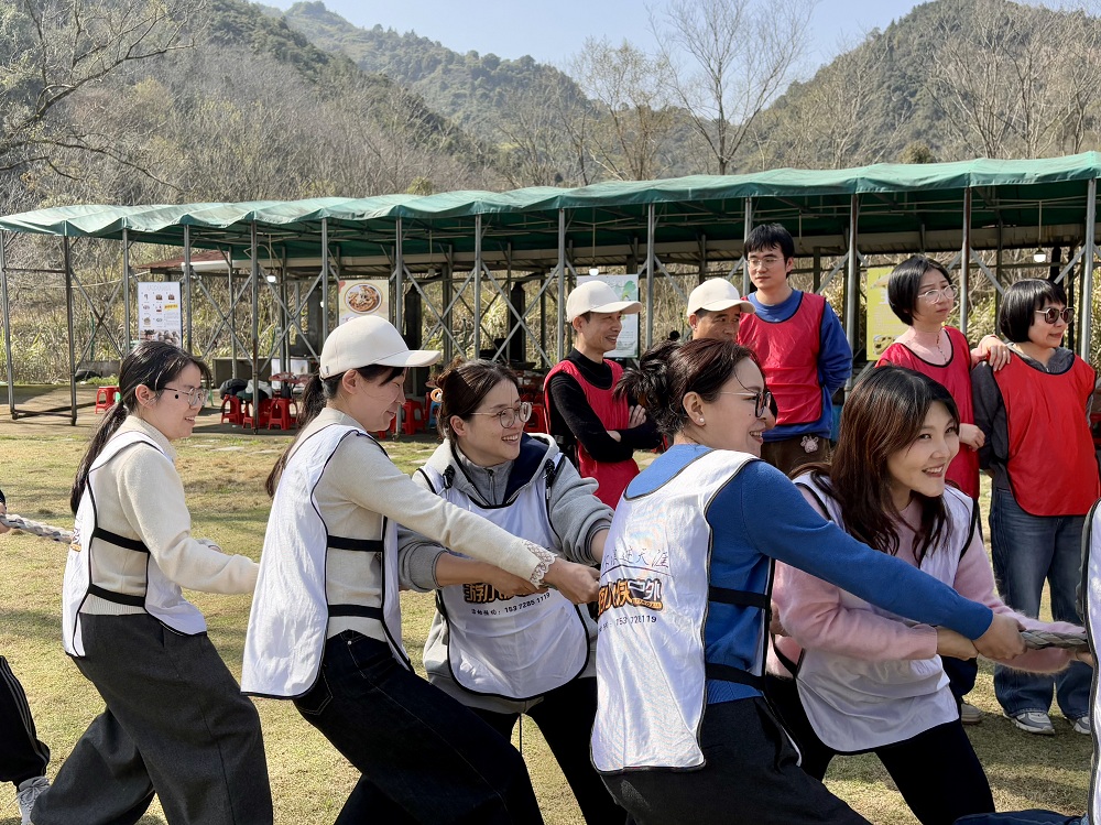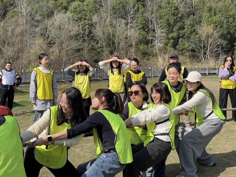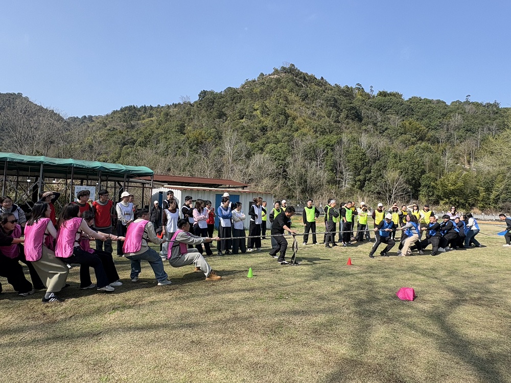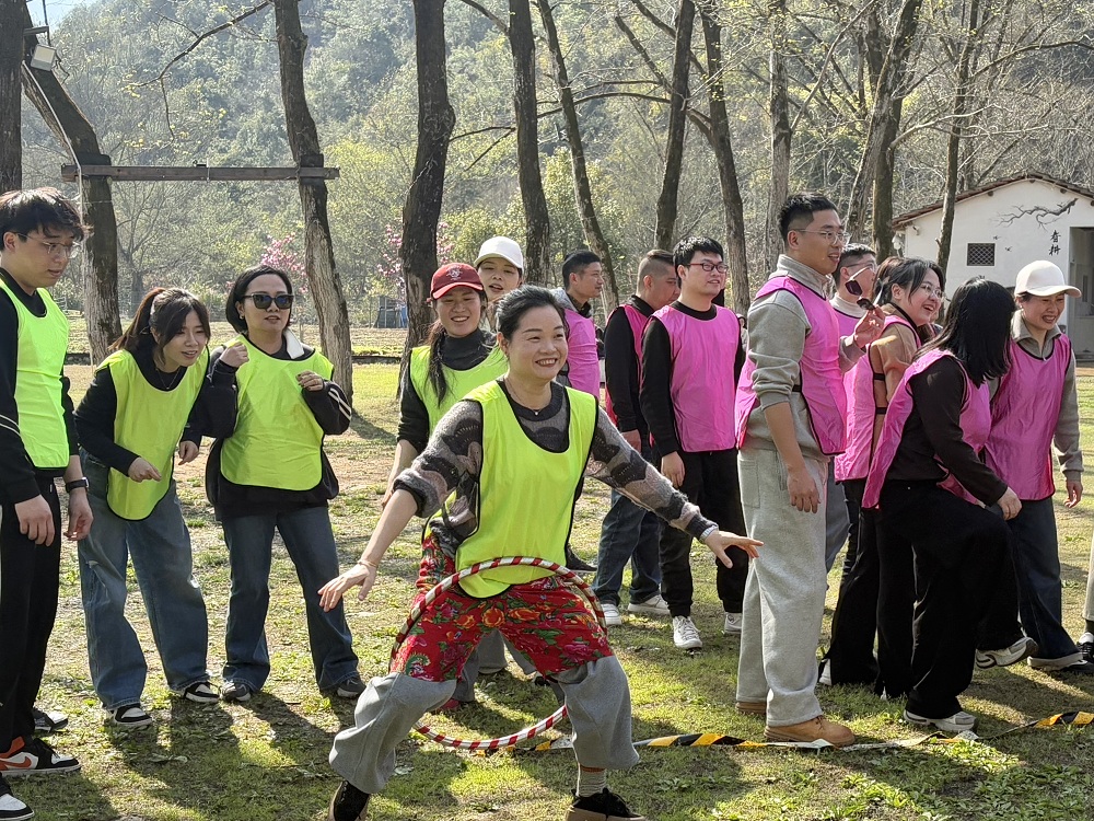 春日的湖岭阳光和煦、空气清新。下午时分,活动在轻松愉快的氛围中拉开帷幕。伴随着欢快的音乐声,女职工们身穿各色队服,以小组形式参与团队协作与个人竞技巧妙融合的趣味团建活动,在春光中尽情释放活力。现场加油声、欢呼声此起彼伏,汇成了一片欢乐的海洋。活动第二站来到桐浦樱花谷,这里花香四溢,景色宜人,一步一景皆是自然之美。大家结伴而行、拾级而上,在拥抱自然、畅快呼吸中放松身心,增进交流。