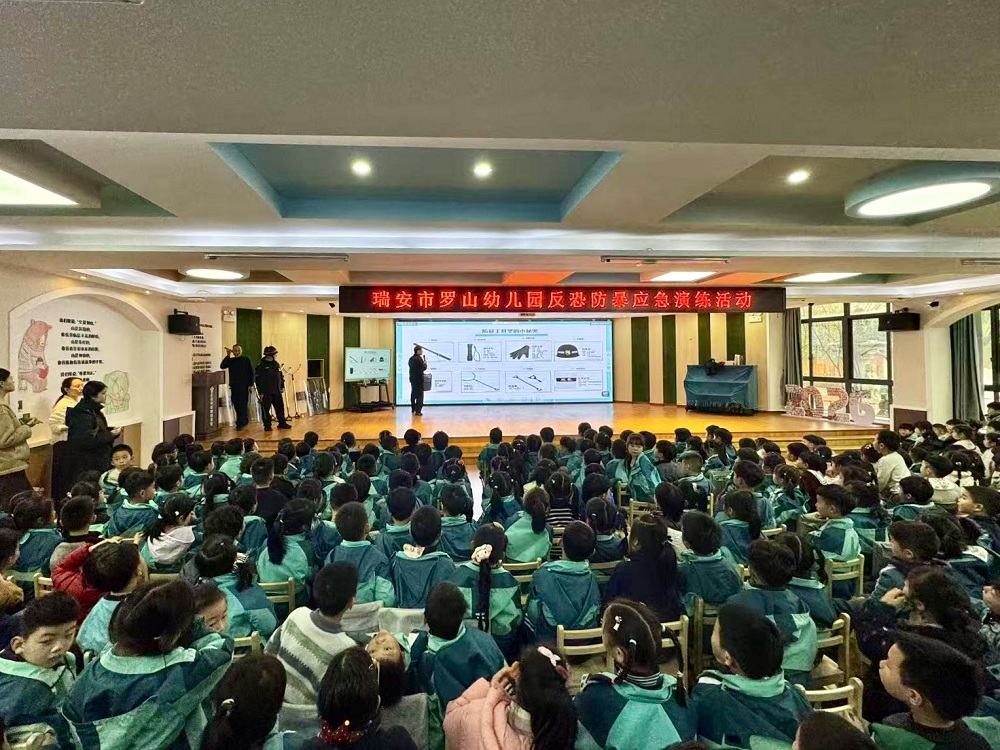 为进一步增强全园师幼的安全防范意识,提高面对突发事件的应急处置能力,近日,市产发集团下属子公司瑞安市安保集团应瑞安市罗山幼儿园(瑞安市罗山学前教育集团)要求,针对全园师幼儿及相关工作人员开展安全培训及反恐防暴演练活动,共计200余名幼儿与教职工参加培训。